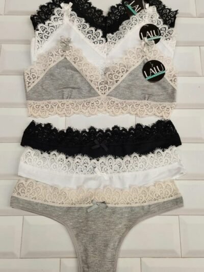 BRALETTE CON EXTENSION DE PUNTILLA Y TANGALESS